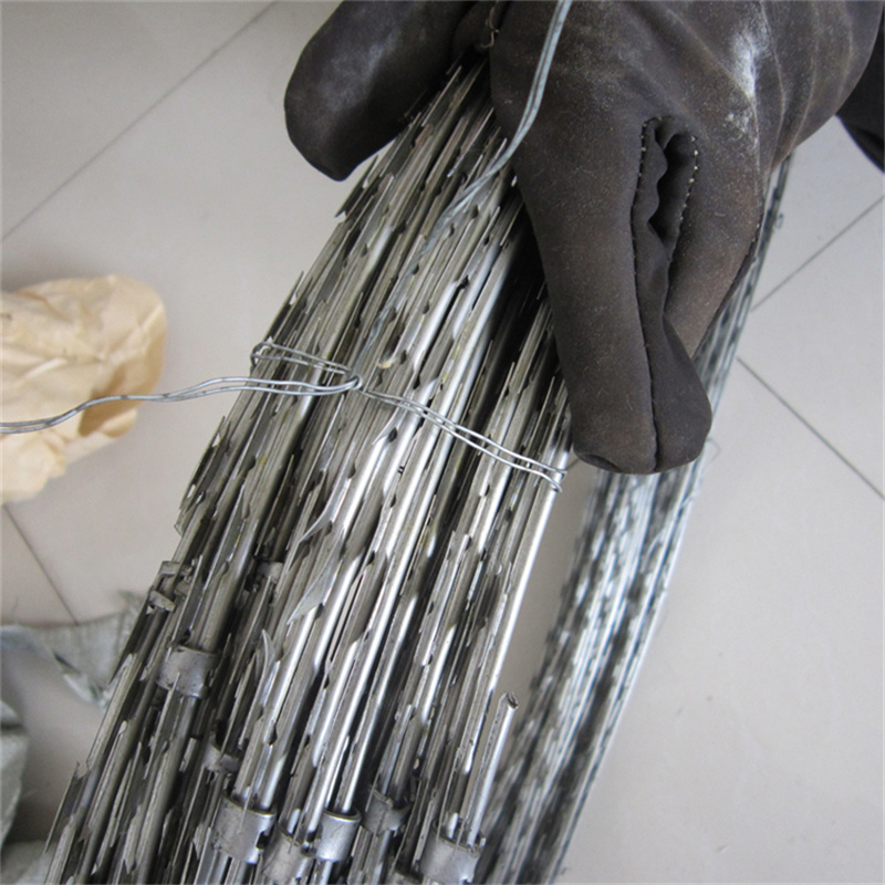 材質(zhì):熱鍍鋅,不銹鋼304。目前我國(guó)的絕大部分監(jiān)獄已經(jīng)淘汰了熱鍍鋅刀刺網(wǎng),選用不銹鋼304材質(zhì),解除了兩年一銹三年一換的后顧之憂。