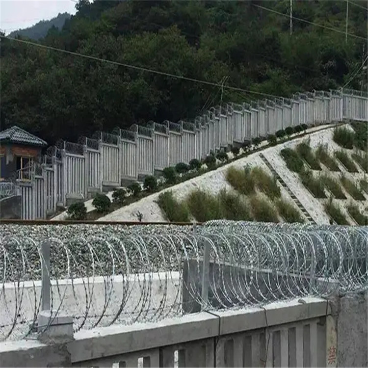 刺絲滾籠主要包括刀片剌網(wǎng),刺繩,和支架等.安裝好后具有很好的阻嚇效果,與能起到相同作用的產(chǎn)品比起來性價(jià)比是高很多的.主要制作工藝就是由熱鍍鋅鋼板或者不銹鋼鋼板沖壓出尖銳的刀片,然后由高張力鍍鋅鋼絲或者不銹鋼絲來做芯線組合構(gòu)成的防護(hù)產(chǎn)品。