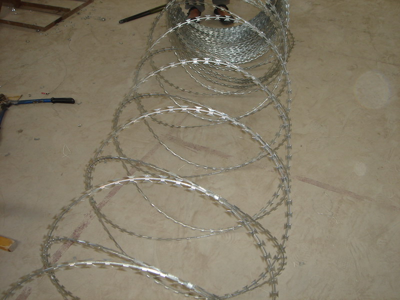 工程案例刀片刺網(wǎng)也稱刀片刺繩、刀片刺絲,是一種新型防護網(wǎng)。刀片刺網(wǎng)具有美觀、經(jīng)濟實用、防阻效果好、施工便利等優(yōu)異特點,目前,刀片刺網(wǎng)已被廣泛應用于許多國家的工礦企業(yè),園林公寓,邊防哨所,軍事領域,監(jiān)獄,看守所,政府建筑物和其他國家的安全設施。