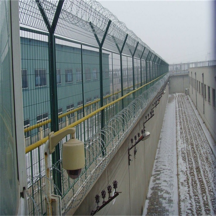 監(jiān)獄隔離網(wǎng)又稱作“Y型安全防御護網(wǎng)”,是由V型支架立柱,加強型焊接片網(wǎng),安全防盜連接件和熱鍍鋅刀片刺籠組成,強度和安全防御性級別很高。