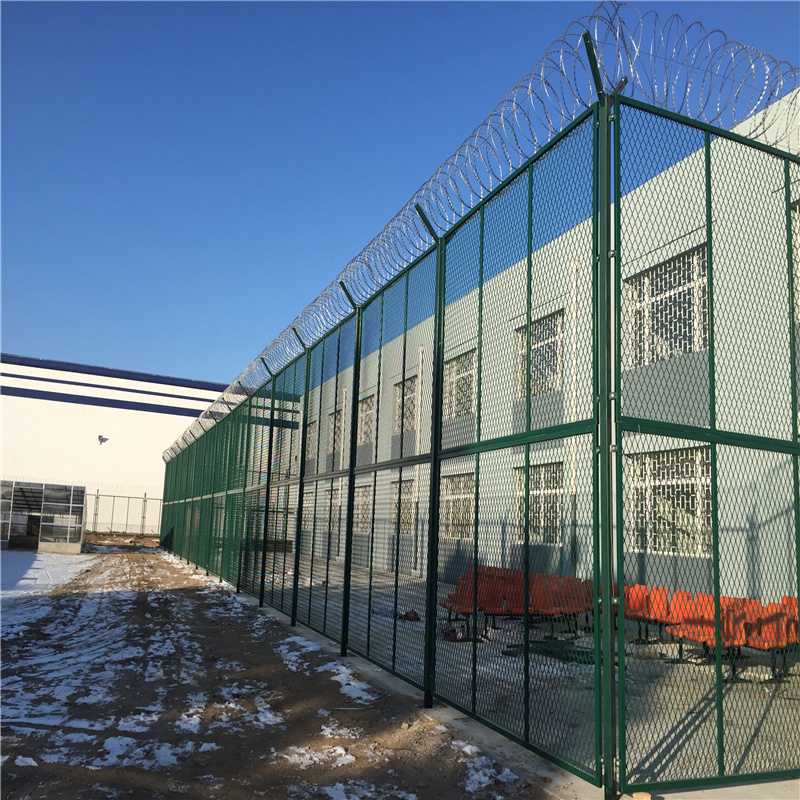 工程案例未成年犯管教所監(jiān)管區(qū)防攀爬隔離網(wǎng)建設(shè)工程,根據(jù)監(jiān)獄建筑設(shè)計(jì)標(biāo)準(zhǔn)(JGJ446-2018)要求:中度戒備監(jiān)管區(qū)內(nèi)的房屋建筑應(yīng)按罪犯的生活、勞動(dòng)、學(xué)習(xí)等活動(dòng)功能合理布局,各功能用房宜以監(jiān)區(qū)為單元進(jìn)行組合。各監(jiān)區(qū)之間、監(jiān)管區(qū)內(nèi)其他主要建筑物之間,應(yīng)設(shè)置高度不小于3m 的防攀爬金屬隔離網(wǎng)進(jìn)行隔離。隔離網(wǎng)非常重要的監(jiān)獄安全防護(hù)設(shè)施,由焊接鋼網(wǎng)加蛇腹形刀刺網(wǎng)組合而成。產(chǎn)品具有結(jié)構(gòu)新穎、堅(jiān)固緊密、網(wǎng)面平整、網(wǎng)孔均勻、刀鋒銳利、防攀爬、抗腐蝕性強(qiáng)等特點(diǎn)。建設(shè)于監(jiān)管區(qū)的內(nèi)外墻地面及高墻之上,網(wǎng)墻內(nèi)側(cè)或頂部加裝蛇腹形刀刺網(wǎng),形成一道高不可攀、難以逾越的隔離障礙。配合高壓打擊電網(wǎng)、各種監(jiān)控報(bào)警設(shè)備確保監(jiān)獄安全萬無一失。