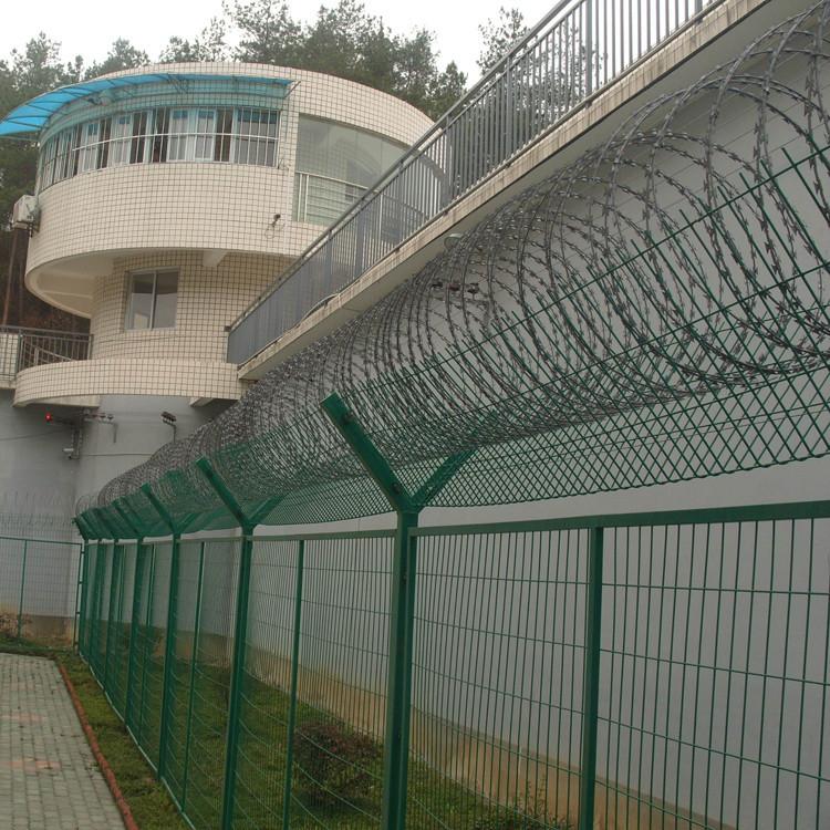 新聞動態(tài)對于高墻外的人來說,看守所就是威嚴(yán)的大門、高聳的圍墻、威武的警察以及哨樓,巡邏道上難以逾越的防攀爬金屬隔離網(wǎng)。 看守所巡邏道金屬隔離網(wǎng)也稱為看守所鋼網(wǎng)墻、監(jiān)獄護(hù)欄網(wǎng),是非常重要的監(jiān)獄安全防護(hù)設(shè)施,由焊接鋼網(wǎng)加蛇腹式刀刺網(wǎng)組合而成。產(chǎn)品具有結(jié)構(gòu)新穎、堅固緊密、網(wǎng)面平整、網(wǎng)孔均勻、刀鋒銳利、防攀爬、抗腐蝕性強(qiáng)等特點。建設(shè)于看守所的內(nèi)外墻地面及高墻之上,網(wǎng)墻內(nèi)側(cè)或頂部加裝蛇腹形刀刺網(wǎng),形成一道高不可攀、難以逾越的隔離障礙。配合高壓打擊電網(wǎng)、各種監(jiān)控報警設(shè)備確保監(jiān)獄安全萬無一失。
