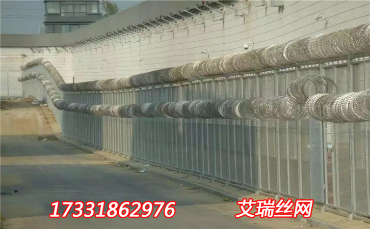 監(jiān)獄鋼網(wǎng)墻是一種新型防護(hù)網(wǎng),由銳利尖角鍍鋅鋼板或不銹鋼薄板做刀片,鋼絲做芯線(xiàn)組合而成的防護(hù)器材. 監(jiān)獄鋼網(wǎng)墻刀片刺網(wǎng)具有嚇阻、防翻越等效果,材質(zhì)堅(jiān)硬,高強(qiáng)度,高張力,造型設(shè)計(jì)獨(dú)特,不宜觸摸,因而能達(dá)到極好的防護(hù)隔離效果.
