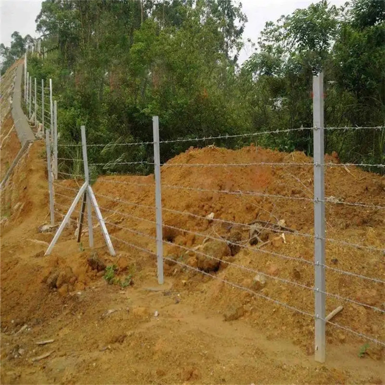 牧場刺鐵絲圍欄施工工序:測量放樣-砼基座施工-立柱施工-刺鐵絲施工。