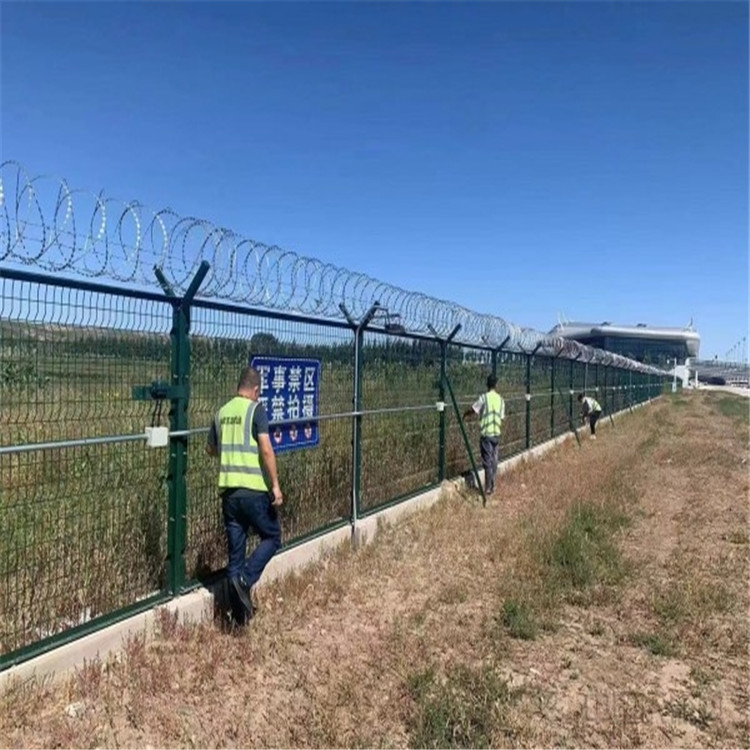 新聞動(dòng)態(tài)機(jī)場(chǎng)飛行區(qū)護(hù)欄網(wǎng)是專(zhuān)為機(jī)場(chǎng)設(shè)計(jì)的機(jī)場(chǎng)圍界產(chǎn)品,采用高強(qiáng)度低碳鋼絲強(qiáng)力焊接,立柱為矩形鋼及高強(qiáng)度圓管,頂部加焊V型支架,大大增強(qiáng)了圍網(wǎng)的抗沖擊力,頂部在增加刀片刀刺絲后又很好的增強(qiáng)了安全防護(hù)性能。