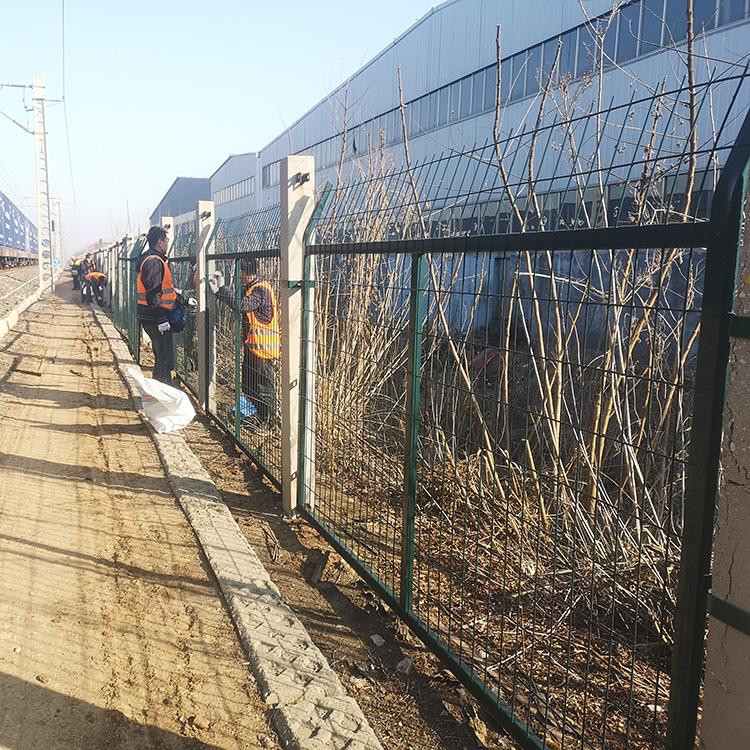鐵路防護(hù)網(wǎng)安裝方法步驟:先用M10*142mm的螺栓穿過(guò)水泥立柱上預(yù)留的孔,同時(shí)用配套的防盜墊圈和螺母將兩個(gè)連接板A分別固定于混凝土立柱兩側(cè);再用M10*22mm的螺栓,配相應(yīng)的防盜墊圈和螺母將連接板A和連接板B固定;調(diào)整金屬網(wǎng)片垂直、水平度,用專用工具講螺栓、螺母固定牢固即可。防護(hù)柵欄安裝時(shí)做到:嚴(yán)、齊、順、美,橋下封閉不得留有空隙,柵欄方向沿橋梁方向順直。 應(yīng)對(duì)柵欄兩側(cè)地面進(jìn)行平整壓實(shí),當(dāng)柵欄設(shè)置在坡地或柵欄兩側(cè)存在高低差時(shí),應(yīng)將柵欄兩側(cè)范圍高出部分進(jìn)行平整,保證柵欄對(duì)于兩側(cè)地面均達(dá)到防護(hù)高度。