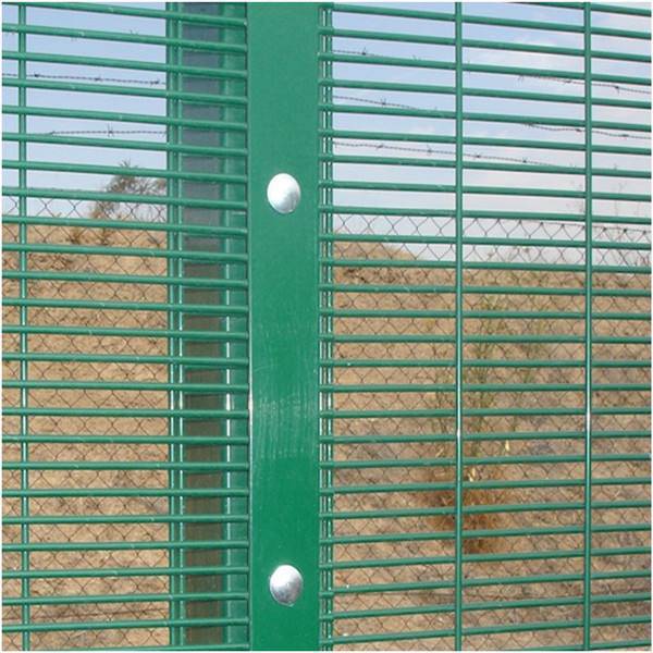 鍍鋅358監(jiān)獄防攀爬網(wǎng)包括;原鍍鋅絲 后鍍鋅 高上鋅量絲不同形式,是358監(jiān)獄防攀爬網(wǎng)中一種常規(guī)、普遍的表面處理方式!一般非洲、中東國家采用這種表面處理的方式比較普遍,還可以采用噴塑、浸塑等工藝,使防爬網(wǎng)不但防爬能力強,而且更加美觀。