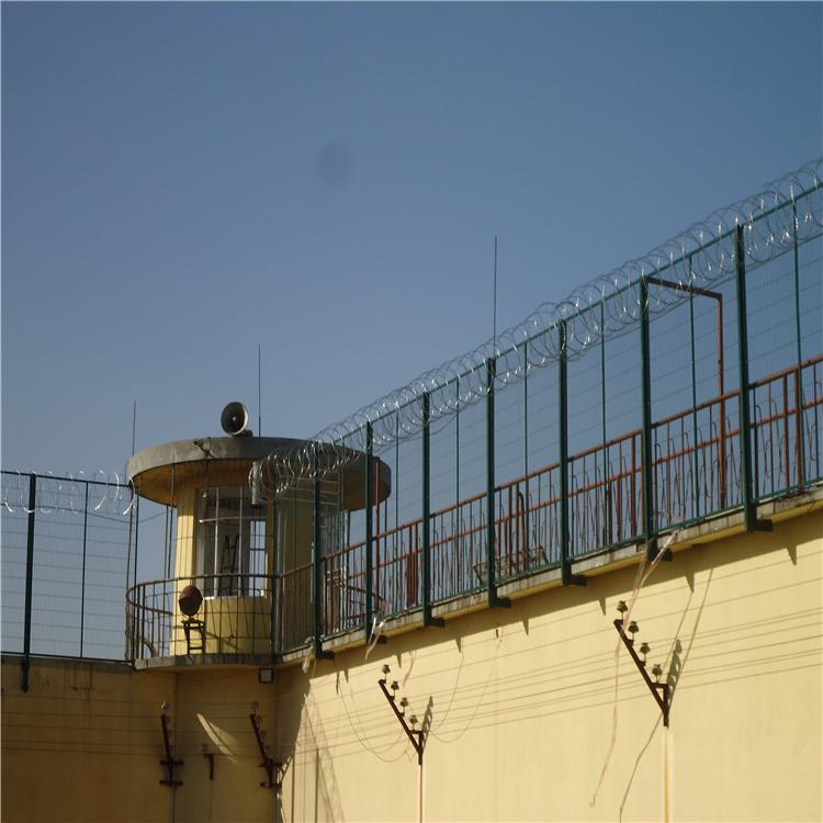看守所監(jiān)管區(qū)巡邏道鋼網(wǎng)墻 通透式金屬隔離網(wǎng)是采用焊接網(wǎng)片與立柱、刀片刺繩三種產(chǎn)品連接起來(lái)組合而成的一種隔離網(wǎng),表面處理采用浸塑或噴塑處理,防止產(chǎn)品生銹腐爛。