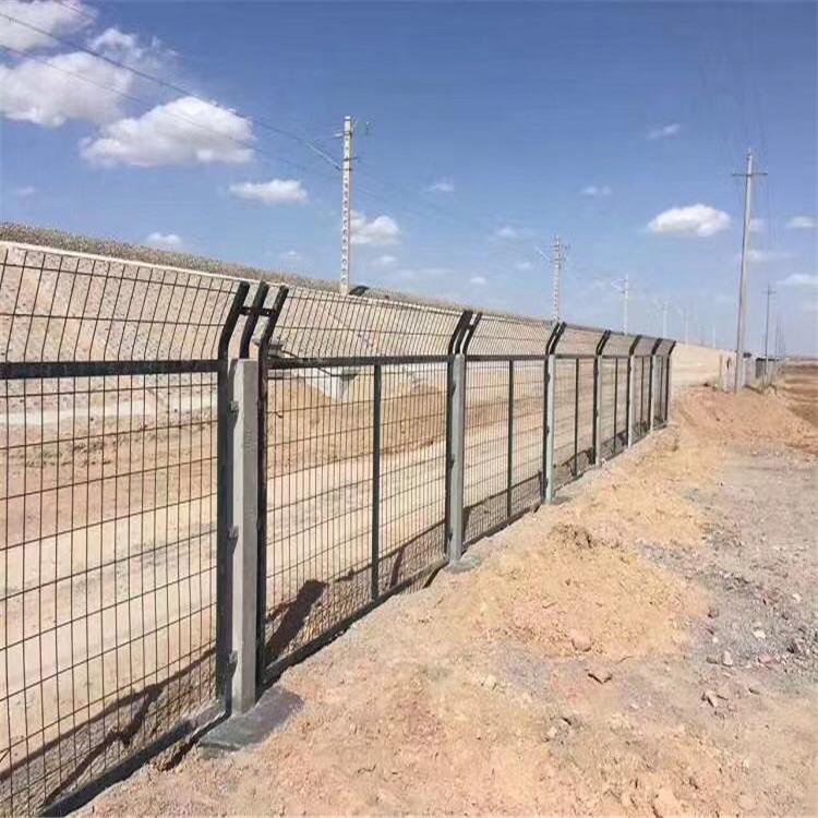 鐵路封閉、高速公路隔離柵、開發(fā)區(qū)圍界、場(chǎng)區(qū)圍網(wǎng),采用立柱采用混凝土澆筑件,工程造價(jià)低,強(qiáng)度高、整體穩(wěn)定好,彩色塑層具有良好的抗腐蝕和裝飾效果,網(wǎng)圍界整體和諧 美觀