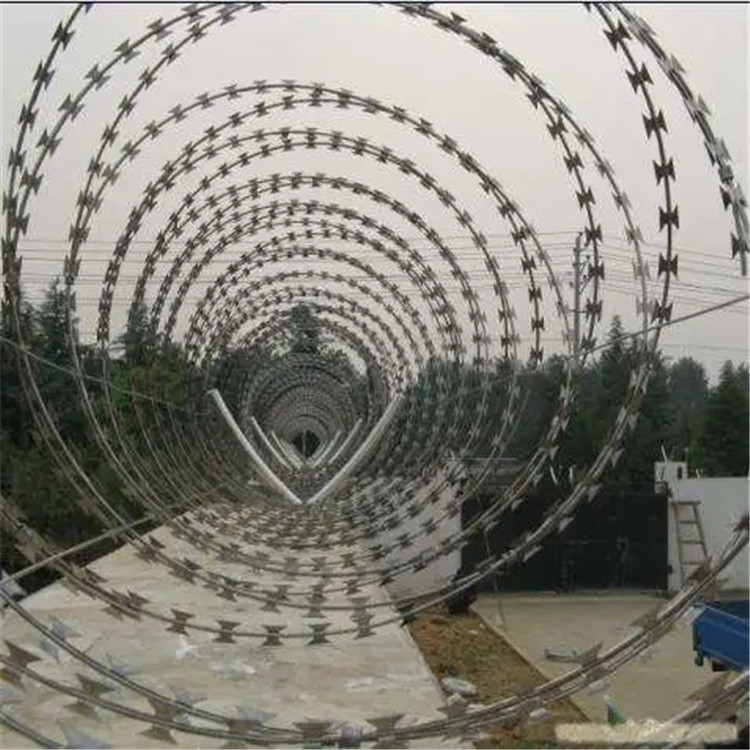通常刀刺網(wǎng)支架焊有與拉絲連接的L型鐵鉤,底座與圍墻連接采用200*200mm鋼板,大大的增強(qiáng)了支架與墻體的牢固度。通常V型支架里外均采用熱浸鋅處理,使支架的防腐效果更好。也可用304不銹鋼材質(zhì),這樣使用壽命更長(zhǎng)。