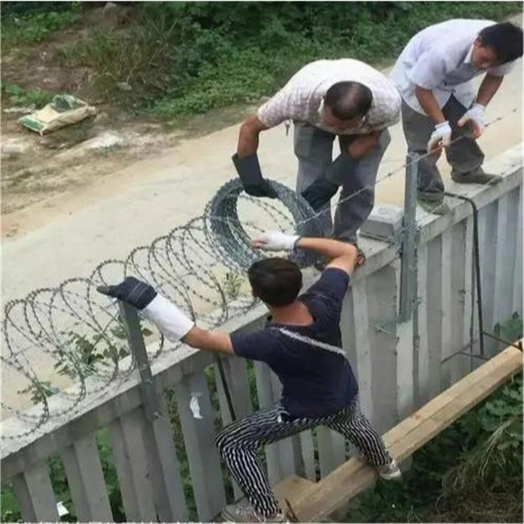 雙螺旋刀刺網(wǎng)廣泛用途:安裝在圍墻或防護(hù)欄頂部,增強(qiáng)周界圍欄防攀爬功能,以起到防盜的目的。公路、鐵路隔離柵。作為隔離屏障,保護(hù)一定區(qū)域免受侵害。用于邊境線區(qū)域保護(hù),防止跨國(guó)境人員流動(dòng),保護(hù)邊境線地區(qū)重要單位和設(shè)施的安全。架設(shè)于果園、農(nóng)田、光伏區(qū)等的簡(jiǎn)易防盜圍欄。