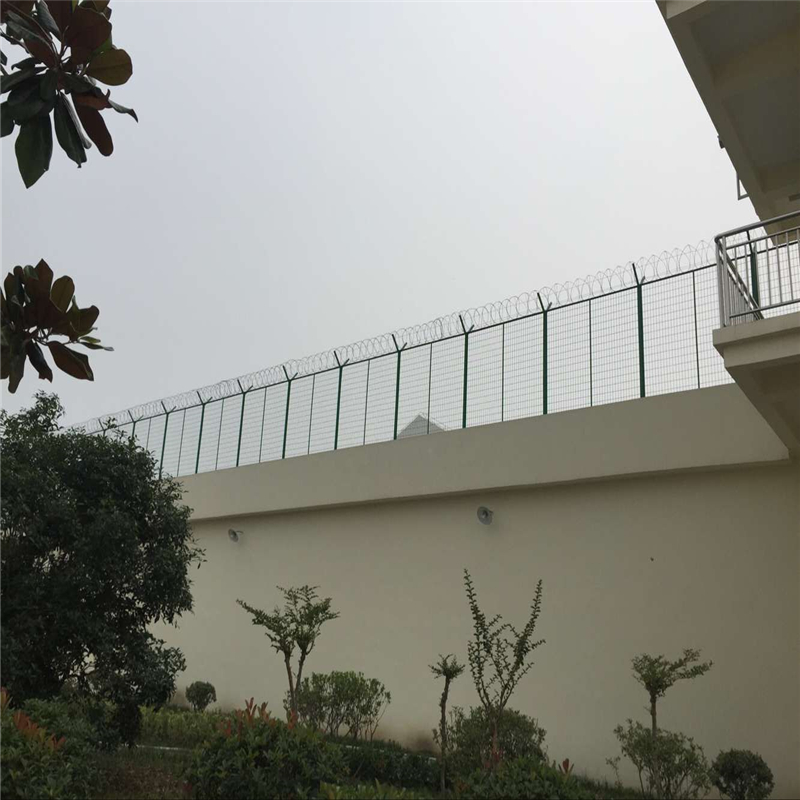 監(jiān)獄武警巡邏通道隔離網又稱作“Y型安全防御護網”,監(jiān)獄鋼網墻,監(jiān)區(qū)圍網,由焊接鋼網結合刀片刺網組合而成。監(jiān)獄刀片刺網主要是由熱鍍鋅鋼板或不銹鋼薄板沖壓而成的,它擁有尖銳的刀片,高張力鍍鋅鋼絲或者不銹鋼絲做芯線組合而成的產品。由于刺網的形狀很特別,而且每個角度都有尖狀刀片,因而能達到極好的防御保護效果。產品具有結構新穎、堅固緊密、網面平整、網孔均勻、刀鋒銳利、防攀爬、抗腐蝕性強等特點。建設于監(jiān)獄的內外墻地面及高墻之上,網墻內側或頂部加裝蛇腹形刀刺網,形成一道高不可攀、難以逾越的隔離障礙。