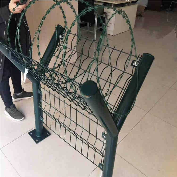 新聞動態(tài)監(jiān)獄防護網(wǎng)又稱監(jiān)獄護欄網(wǎng)或監(jiān)獄隔離柵,主要是采用高強度的刀片刺網(wǎng)與普通防護網(wǎng)的結合,由V型支架立拄,加強型焊接片網(wǎng),安全防盜連接件和刀片刺網(wǎng)組成.刀片刺網(wǎng)是一種新型防護網(wǎng),由銳利尖角鍍鋅鋼板或不銹鋼薄板做刀片,鋼絲做芯線組合而成的防護器材.