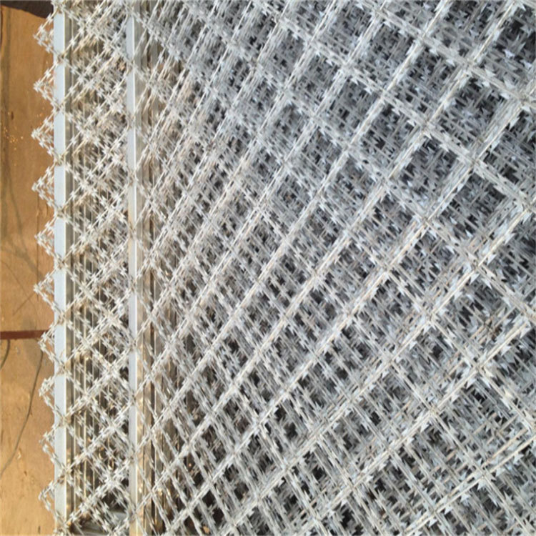 刀片刺繩是沖剪鋼板成銳利的尖刀帶子,然后包裹中碳鋼絲(筋絲)之上。刀片刺絲是從海外引進的絕對禁止通過的新型隔離產(chǎn)品。鋒利的刀片刺絲由雙根線扣卡子組裝后成蛇腹狀,讓人看到不寒而粟,能夠起到了恐嚇作用,實際上人挨上刀片刺絲就被劃破,實際效果明顯。該產(chǎn)品施工便利便捷。深受軍隊和警察喜好。各國已將刀片刺網(wǎng)廣泛用于飛機場、軍事重地、邊境線、監(jiān)獄、政府機關(guān)、銀行,以及別墅的圍墻、高速公路、鐵路護欄等地。