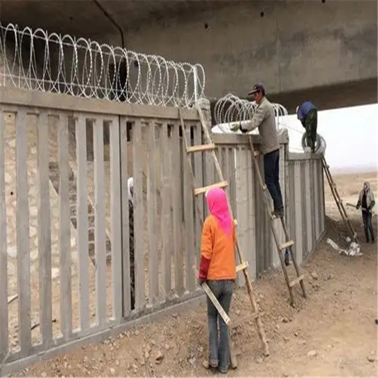 刺絲滾籠安裝工人一定要戴好專用手套,防止被刺絲滾籠扎破。工人不要年齡太大,防止從水泥柵欄上面滑落,造成人員傷亡。安裝刺絲滾籠時(shí)一-定要做到“"嚴(yán)直齊美、 間距均勻”美觀和防護(hù)的雙結(jié)合。刺絲連接卡的位置,施工中 ,首先要把縱向拉筋拉直,兩道拉筋成平行狀態(tài);均勻的把刺絲滾籠分開,固定加密支架,隨后加固刺絲連接卡。