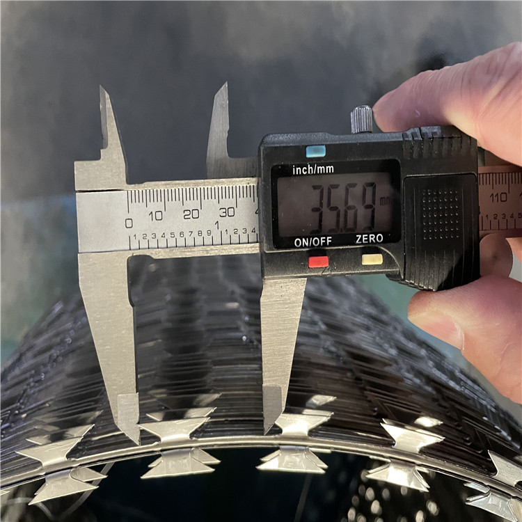 1、制作刀片:選用優(yōu)質(zhì)Q195L熱鍍鋅帶鋼(或者不銹鋼帶鋼),根據(jù)客戶選定的花型,經(jīng)高速沖床,沖軋成鋒利的刀片刺條,把刀片刺條纏成圓餅狀。
