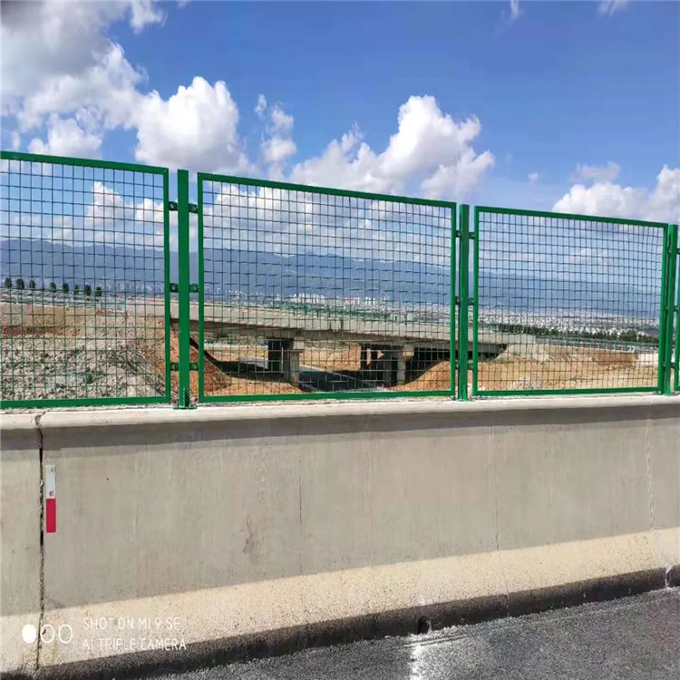 1.防拋網(wǎng)高度為1.8米,甚至高達2.2米。 2.鐵路、橋梁、公路防拋網(wǎng)采用Hpb235矩形鋼架,規(guī)格:30*50*2.0mm。鋼絲采用hpb235直徑6.5mm高速冷拔鋼絲制成,規(guī)格:75*150mm*4.0mm,上外彎角30,垂直高度300mm。 3.網(wǎng)片由厚度為4.0mm的90度角鋼板制成,根據(jù)不同位置大致可分為三種形式。4:公路防拋網(wǎng)采用鍍鋅、浸塑處理,具有良好的防腐、防曬性能。公路防拋網(wǎng)一般顏色為深綠色,要求表面光滑,無流柱、粉泡、裂紋、漏鐵等現(xiàn)象。 5.高速公路防拋網(wǎng)矩形框架與連接鐵板、網(wǎng)狀鋼絲、矩形鋼管的焊接宜采用電阻焊,并應選用合適的焊條,以減少變形。焊后應對焊渣進行處理,焊接引起的變形應及時整平,以保證網(wǎng)片本身有足夠的強度。鋼絲網(wǎng)焊接點強度大于1000N,焊點脫落小于2-3%。 6. 高速公路防拋網(wǎng)連接板要求:長度誤差小于等于1.0mm,寬度誤差小于等于0.5mm。厚度誤差小于等于0.5mm,網(wǎng)位偏差小于1.0mm。