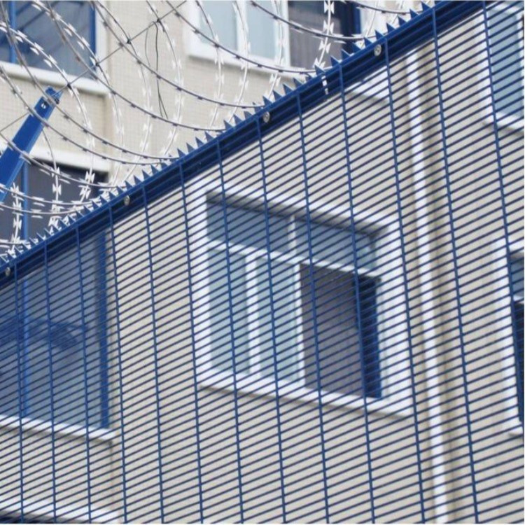 工程案例密紋護(hù)欄網(wǎng)又名358護(hù)欄網(wǎng),358密紋護(hù)欄網(wǎng), 358護(hù)欄網(wǎng)是一種外型高大的焊網(wǎng),上部有保護(hù)性尖刺網(wǎng),網(wǎng)線為鍍鋅鋼絲,加pvc涂塑處理,在保護(hù)美觀的同時(shí),保證了堅(jiān)固與耐用。網(wǎng)片網(wǎng)孔比較小,對(duì)焊接技術(shù)和機(jī)器要求比較高。特點(diǎn)是橫絲或者豎絲間隙很小,一般間隔為30mm以內(nèi),能有效防止攀爬和絲鉗的破壞,并具有良好的透視性。也可與刀片刺絲網(wǎng)配合使用,增強(qiáng)防護(hù)性能。