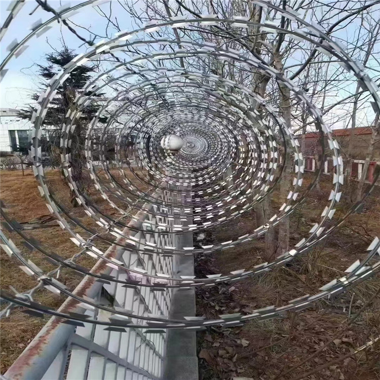 新聞動態(tài)為了增強安全防御,應生了刀片刺繩這種產(chǎn)品,常用的就是BTO-22刀刺網(wǎng),材質(zhì):熱浸鋅和不銹鋼,型號:BTO-22,芯線:常用2.5mm,厚度:0.5mm,刀片長度:22mm*15mm,刀片間距:34mm。直徑300-1000mm,常用的是500mm的。如果是陰雨多的地方建議選擇不銹鋼刀刺網(wǎng)材質(zhì),其他地方熱浸鋅的就可以。特殊場地,如監(jiān)獄,機場等重要防護使用,就要選擇不銹鋼材質(zhì),而且必須是達到標準要求的,想要達到國標要求的304不銹鋼刀刺網(wǎng)它的芯線,必須全部采用304材質(zhì),使用年限大大提高了,價位也就比市面上銷售的刀刺網(wǎng)高出很多。也有的地方使用201材料的,但是性能方面略差相對比較便宜,201含鎳低相比性能就不如304的蛇腹形刀刺網(wǎng),不銹鋼材質(zhì)刀片刺網(wǎng)用途世界各國已將刀片刺網(wǎng)廣泛用于軍事重地、監(jiān)獄、政府機關(guān)、銀行,以及生活小區(qū)圍墻、私人住宅、別墅的圍墻、門窗、高速公路、鐵路護欄以及邊境線等用來防護保安。