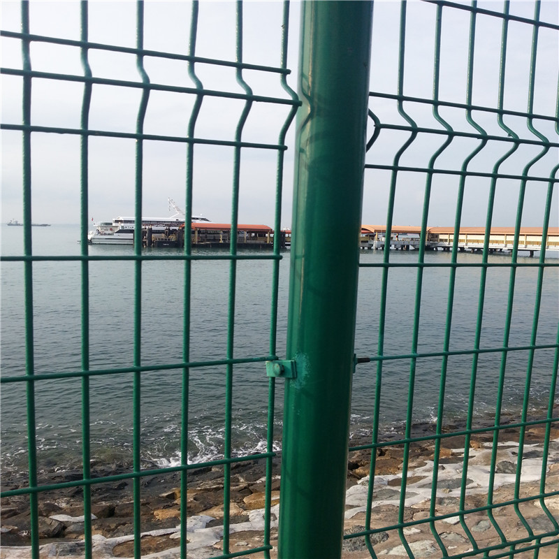 護欄網(wǎng)用連接附件與鋼管支柱固定。采用國產(chǎn)優(yōu)級低碳鋼絲為材質(zhì)焊接而成,表面采用電鍍、熱鍍、浸塑、噴塑等多種方式,來進行防腐處理。圍欄網(wǎng)在配上不同的立柱進行連接。
