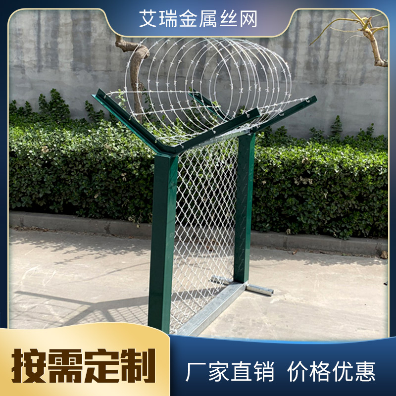 工程案例注:如果在機(jī)場護(hù)欄網(wǎng)頂部加裝刀片刺絲、刀片刺繩后又好的增強(qiáng)了安全防護(hù)功能。選用電鍍、熱鍍、噴塑、浸塑等防腐辦法,具有好的、抗曬、耐候等特色。其商品外型漂亮、花色多樣,既起到圍欄效果,又起到美化效果。因?yàn)榫哂邪踩愿?、防攀爬才能?網(wǎng)片銜接辦法選用特制SBS緊扣件,有效避免人為的破壞性拆開,橫向四道折彎加強(qiáng)筋,使網(wǎng)面強(qiáng)度明顯添加。