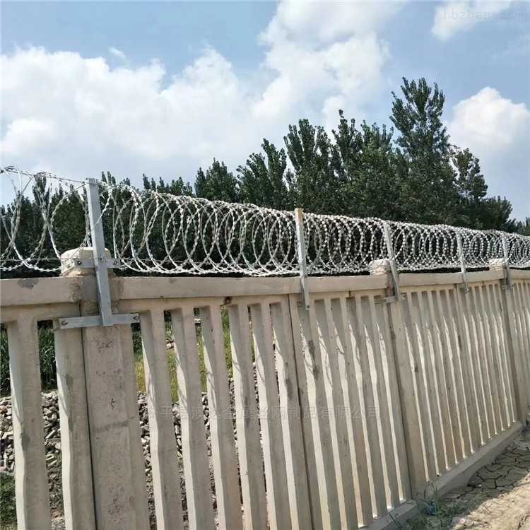 鐵路刺絲滾籠防護(hù)柵欄主要包括刀片剌網(wǎng),刺繩,和支架及卡扣等。安裝好后具有很好的阻嚇效果,與能起到相同作用的產(chǎn)品比起來(lái)性價(jià)比是高很多的。主要制作工藝就是由熱鍍鋅鋼板或者不銹鋼鋼板沖壓出尖銳的刀片,然后由高張力鍍鋅鋼絲或者不銹鋼絲來(lái)做芯線組合構(gòu)成的防護(hù)產(chǎn)品。配合立柱支架、加密支架、臺(tái)階支架安裝在水泥立柱上起到固定的作用,一般間隔3米安裝一個(gè)。