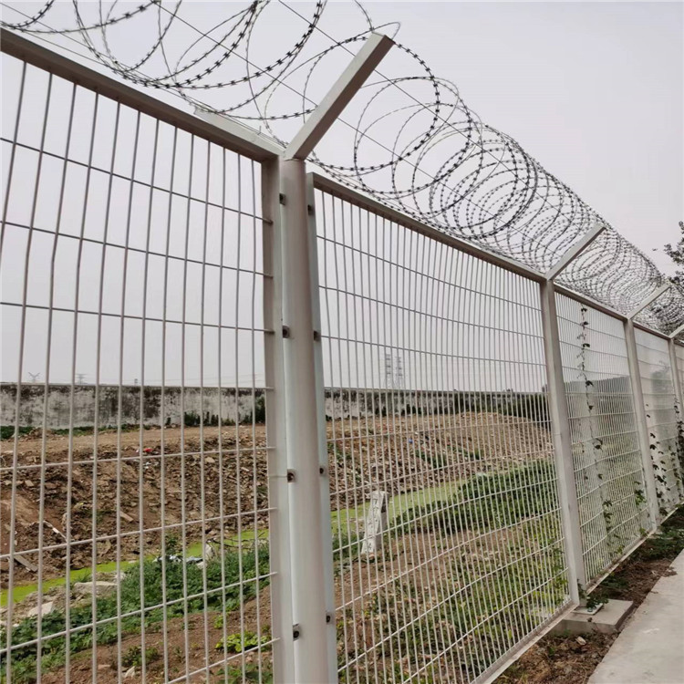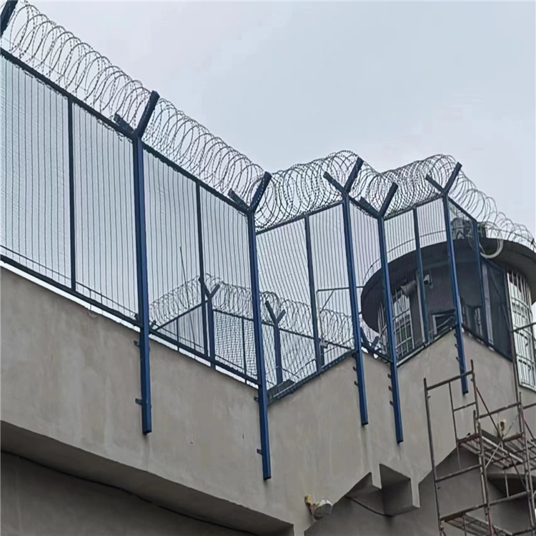 監(jiān)獄隔離網,主要是采用頂部防爬刀片刺網與高強度防護網的結合,由V型支架立拄,加強型焊接片網,安全防盜連接件和刀片刺網組成。具有嚇阻、防翻越等效果,材質堅硬,高強度,高張力,造型設計獨特,不宜觸摸,因而能達到極好的防護隔離效果