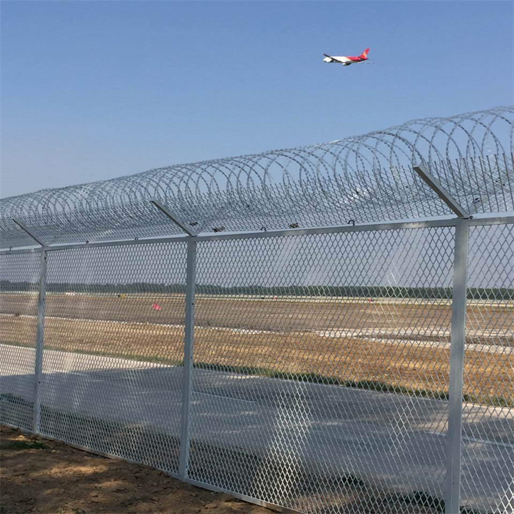 機(jī)場圍界采用5.0mm高強(qiáng)度低碳鋼絲進(jìn)行精密焊接,確保了其穩(wěn)固性。網(wǎng)孔設(shè)計為50mmX100mm和50mmX200mm,既保證了通透性,又增強(qiáng)了防護(hù)效果。網(wǎng)片中巧妙地加入了V型加強(qiáng)筋,這一設(shè)計顯著提升了圍網(wǎng)的抗沖擊能力。