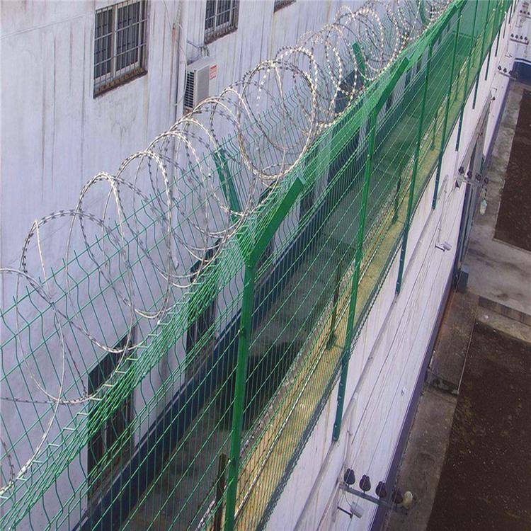 監(jiān)獄隔離網(wǎng)一般是由Y型立柱和加強型網(wǎng)片而組成,上面安裝50、60或者80公分的刀刺滾籠,安全防御級別很高,被廣泛應用于戒毒所、看守所、監(jiān)獄、軍事基地等高安全場所。
