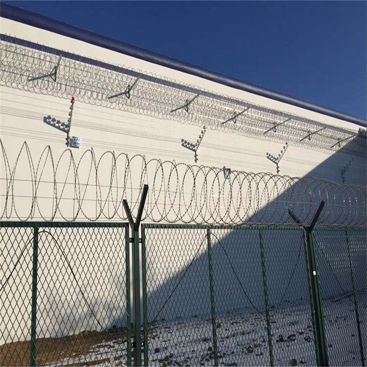 工程案例監(jiān)獄鋼網(wǎng)墻又稱作“Y型安全防御護(hù)網(wǎng)”,是由V型支架立柱加強(qiáng)型焊接片網(wǎng),安全防盜連接件和熱鍍鋅刀片刺網(wǎng)組成強(qiáng)度和安全防御性級別很高。被廣泛應(yīng)用在監(jiān)獄,軍事基地等高安全場所。