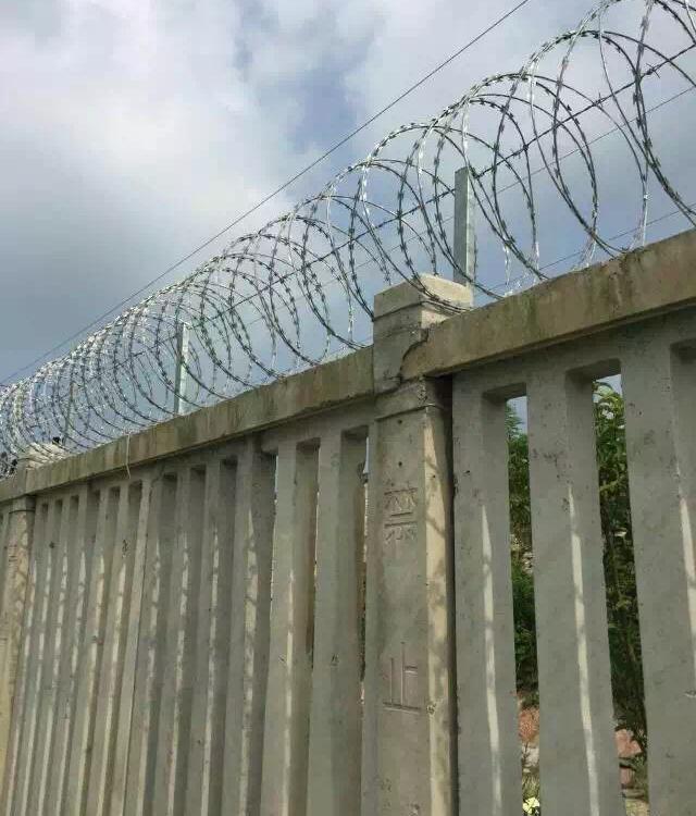 新聞動態(tài)2012年最新《鐵路線路防護柵欄》[通線(2012)8001]通用參考圖出爐! 文獻(xiàn)規(guī)定:鐵路柵欄一改往日焊接鋼絲網(wǎng)柵欄、刺絲網(wǎng)柵欄等產(chǎn)品,改為防御性更強、壽命更長久的:鋼筋混凝土柵欄+0.5米高刺絲滾籠的防護柵欄。詳細(xì)內(nèi)容如下: 鋼筋混凝土柵欄:詳見圖紙 0.5米高刺絲滾籠組成:刺絲刺繩+刀刺滾籠+鋼絲+立柱 圖集中:5、刺絲滾籠:(1)刺絲滾籠采用刀片刺繩繞圈后相鄰兩圈每隔120度用刺絲連接卡固定,張開后形成蛇腹網(wǎng)狀,閉合后刀片刺繩卷徑為50cm,張開后每交叉圈安裝間距20cm,直徑不小于45cm。(2)刀片刺繩由沖切鋼板采用機械軋在鋼絲上成型,刀刺寬度22mm,刀刃垂直間距15mm,刀刺縱向間距34mm,芯絲直徑為2.5mm。刀片厚度0.5mm的Q195鋼板網(wǎng)沖切制作。芯絲由HPB300 -6.5mm高線鋼絲冷拔加工。(3)刺絲滾籠由刺絲連接卡扣與固定在支架上的縱向拉筋相連接。縱向拉筋與支架的連接采用-2.5mm的冷拔鍍鋅鋼絲繞2圈后擰緊固定。支架設(shè)置在跨度3m防護柵欄的立柱和跨中位置,其中跨度進設(shè)置與立柱上部,支架與防護柵欄采用支架抱箍連接,對于已經(jīng)安裝金屬網(wǎng)片的防護柵欄。刺絲滾籠直接采用-2.5mm的冷拔鍍鋅鋼絲或刺絲連接卡扣固定于金屬網(wǎng)橫片和金屬絲上。(4)刺絲滾籠的下緣距離鋼筋混凝土防護柵欄上緣的垂直距離為0.05m.6.陡坡地段防護柵欄下檻下部與地面間的間隙采用C25混凝土封閉,寬度180mm,與立柱兩倒平齊,埋入地面以下不小于0.3m.每單元于地面處留移100mm泄水孔。