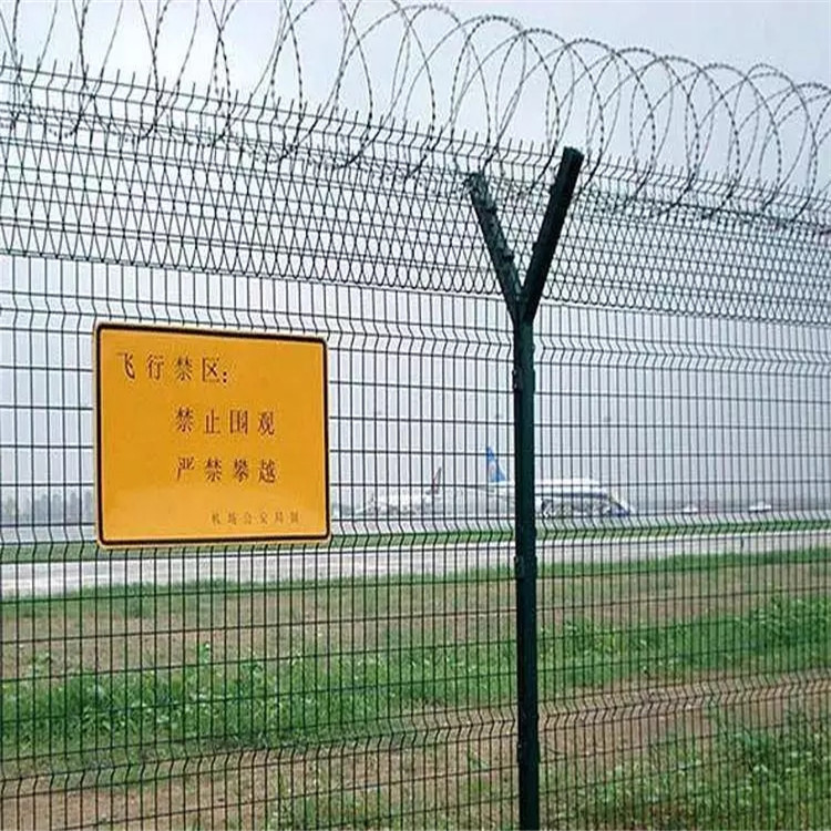 新聞動態(tài)Y型安全防御護網(wǎng)是由折彎網(wǎng)片,V型支架立柱,加強型焊接片網(wǎng),上面有刀片刺繩(又稱刀刺網(wǎng),刀片護網(wǎng))安全防盜連接件組成強度和安全防御性級別很高。因立柱外形酷似英文字母Y,所以被稱為Y型安全防御護網(wǎng)。頂部加裝刀片刺絲、刀片刺網(wǎng)后又很好的增強了安全防護性能。產(chǎn)品造型美觀、花色多樣,既起到圍欄作用,又起到美化作用。由于具有安全性高、防攀爬能力好,網(wǎng)片連接方式采用特制SBS緊扣件,有效防止人為的破壞性拆卸。被廣泛應用在監(jiān)獄,機場,軍事基地等高安全場所。