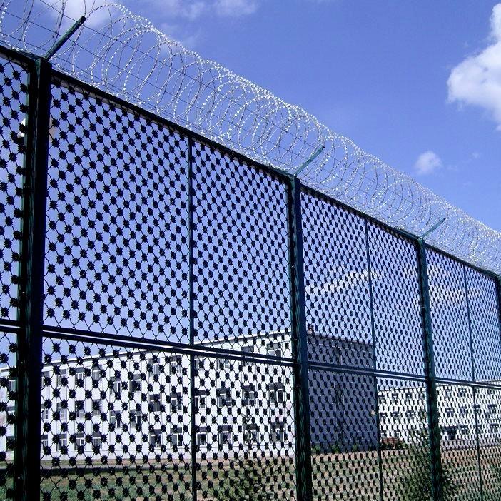 監(jiān)獄護欄網(wǎng)因其便于安裝運輸,結(jié)構(gòu)的簡單,對環(huán)境適應(yīng)性強,價格低廉可以廣泛使用得到了客戶們的喜愛。近年來發(fā)展出來的刀片刺網(wǎng)是一種新型防護網(wǎng),由銳利尖角鍍鋅鋼板或不銹鋼薄板做刀片,鋼絲做芯線組合而成的防護器材,另一種螺旋型交叉刀片刺網(wǎng)是在兩條刀片刺網(wǎng)之間以不銹鋼片和鍍鋅鋼片夾扣,展開后即呈交叉狀,美觀又實用。